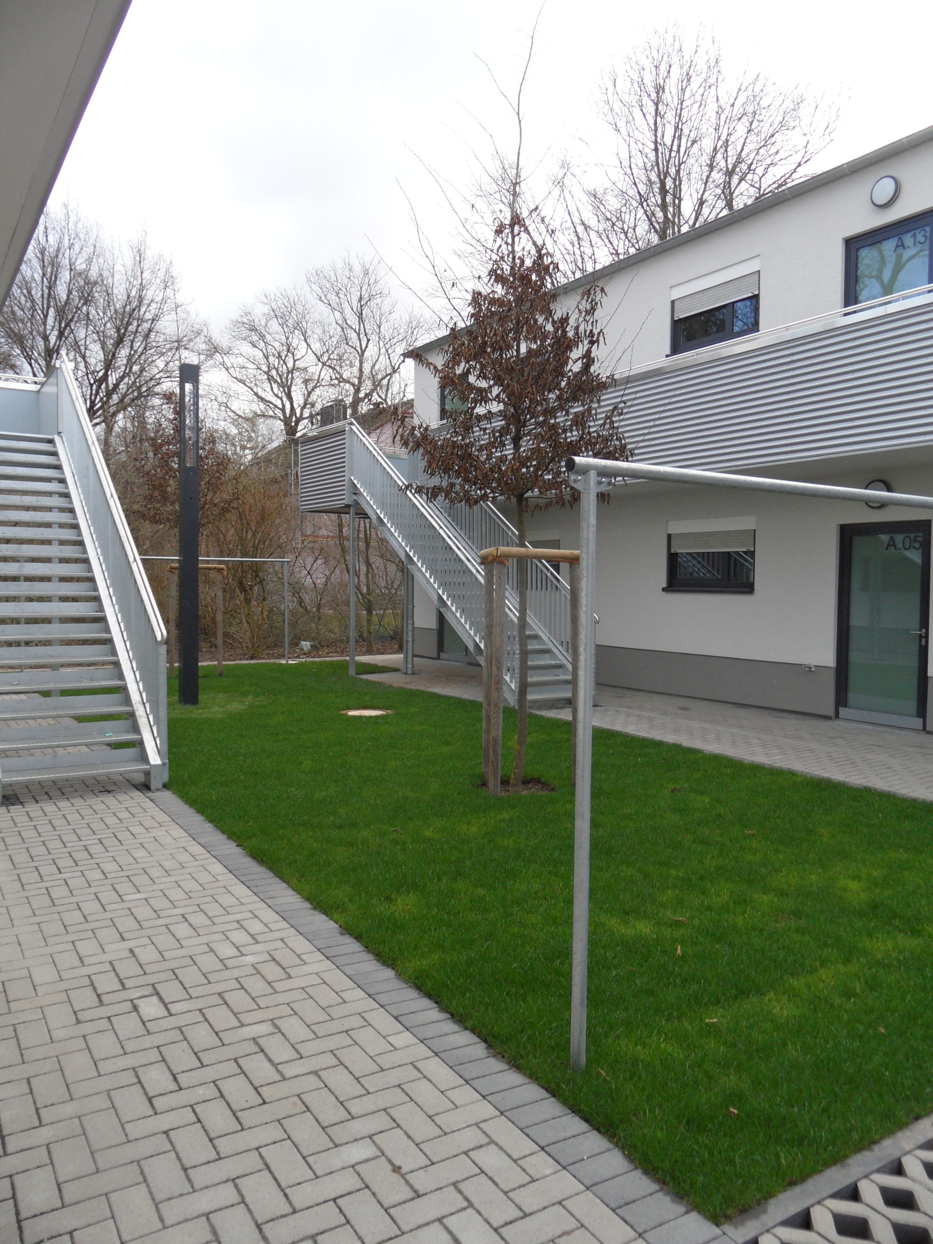 2020-02-18 Duerener Str. 283 ← Previous Next → Der Innenhof der beiden Häuser der neuen Unterkunft in Lindenthal kurz vor Fertigstellung. Feb. 2020